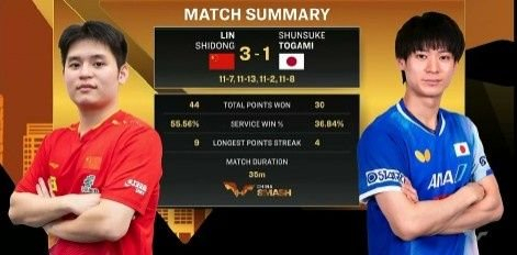 直播吧9月30日讯 2025年WTT中国大满贯男单1/16决赛,林诗栋3-1户上隼辅,晋级16强。