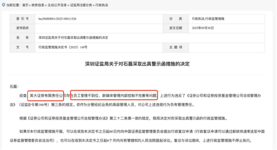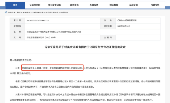 9月30日,深圳证监局再度敲响合规警钟,这一次被点名的是英大证券。