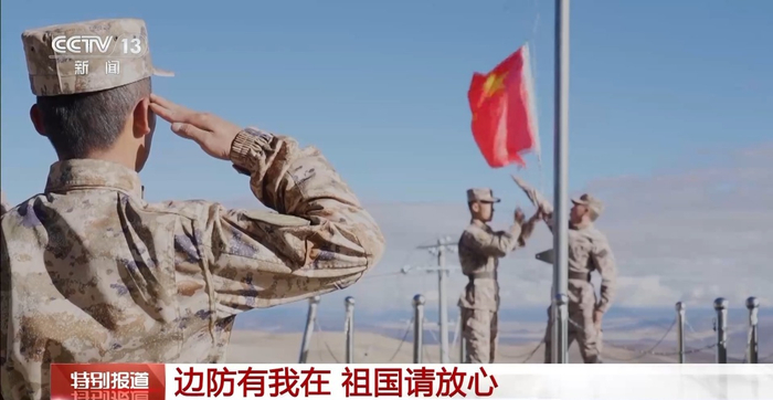 西藏军区5592哨所是以海拔高度命名的哨所,也是全军海拔最高的驻兵点,官兵们庄严肃立,举行升旗仪式。这里自然环境恶劣,含氧量不足内地的40%。哨所官兵坚守在“生命禁区”,用青春热血践行忠诚使命。