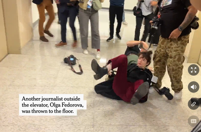 报道描述现场画面称,事发时一群人正进入电梯,包括数名蒙面特工和一名携带相机的纽约报纸《amNewYork》的记者。一名身穿印有“警察”字样防弹背心的蒙面男子突然抓住该记者并试图将其推出电梯,其他人则高喊“滚出电梯”,蒙面特工还将另一名在电梯外拍照的女子推倒在地。
