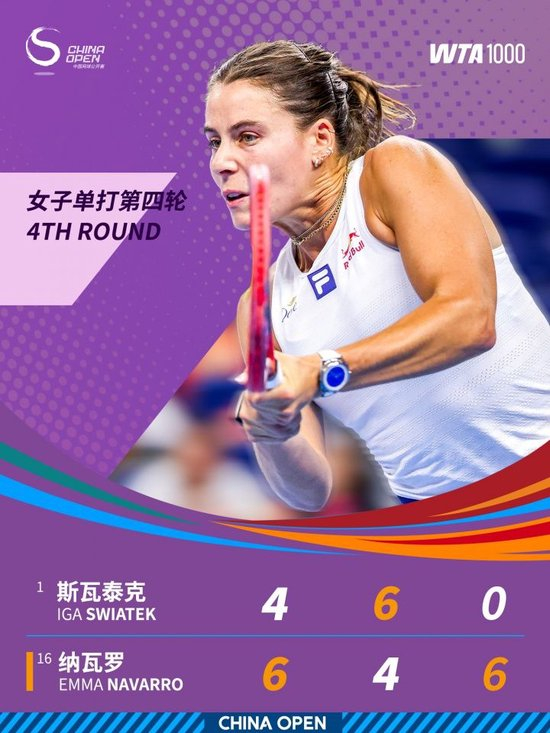 直播吧10月01日讯 中网女单第四轮,16号种子纳瓦罗决胜盘送蛋,以6-4、4-6、6-0挑落头号种子、前赛会冠军斯瓦泰克,职业生涯第三次击败世界前二,这也是她第三次跻身1000赛八强。