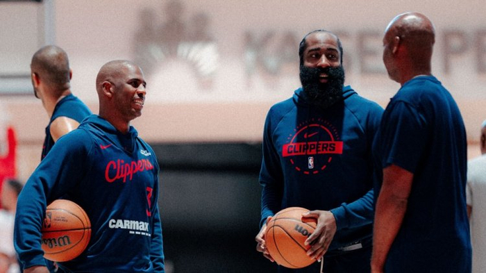 直播吧10月1日讯 今天,快船官方晒出了球队训练营首日的照片。其中,哈登和保罗同框亮相。