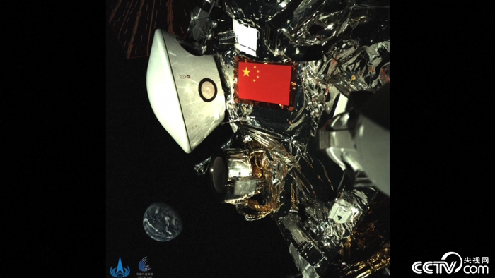 10月1日,国家航天局发布行星探测工程天问二号任务探测器在轨飞行期间获取的探测器与地球合影图像,鲜艳的五星红旗、白色的返回舱和远处蓝色的地球构成一幅美妙画面。