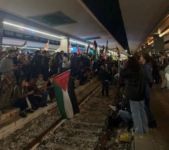 消息传回欧洲,欧洲人彻底愤怒了,即便已经是深夜,很多人高举巴勒斯坦旗帜,走上街头呐喊;在意大利,愤怒更在人们心头燃烧,一些人占领了铁路……