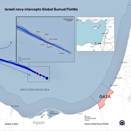 随后消息传出,多艘船只已遭以军扣押,包括通贝里在内的很多人被以军逮捕。