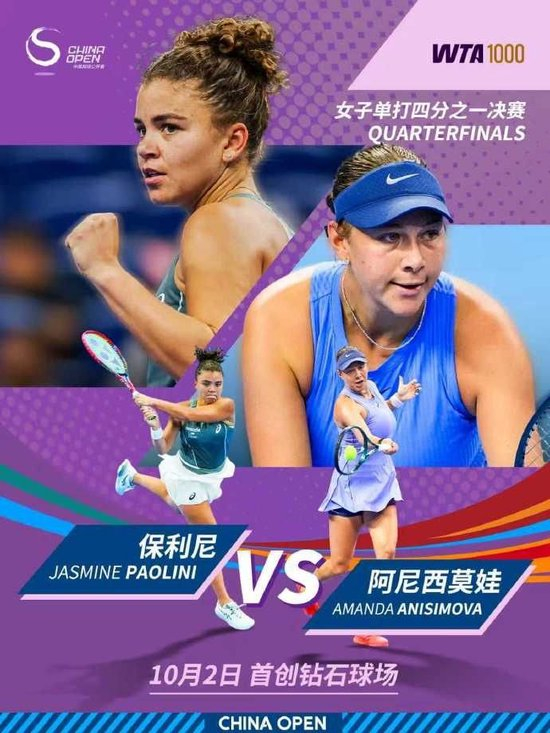 直播吧10月2日讯 WTA1000中国网球公开赛单打1/4决赛,阿尼西莫娃淘汰保利尼晋级。