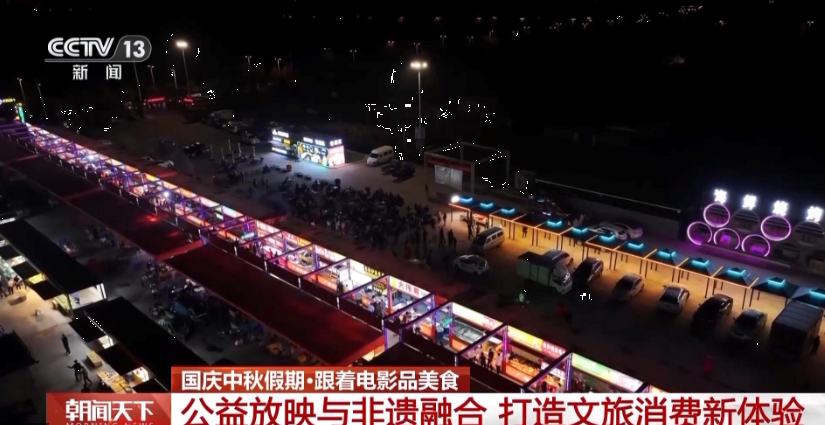 国庆中秋假期,在辽宁省铁岭调兵山市,当地举办露天电影与非遗美食相结合的系列活动,打造独特的文旅消费体验。