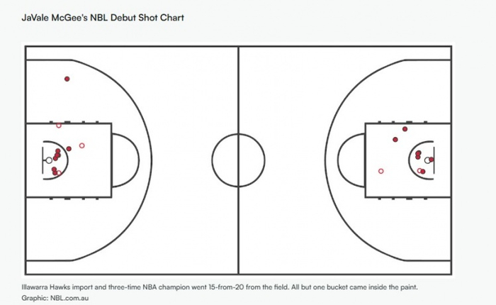 虽然比赛没能赢下,但麦基的篮下统治力一览无余,他用空中接力拿下了在NBL的第一分,之后便是开启进攻万花筒模式,把所有篮下的机会都变成了暴力扣篮。首秀32分不言而喻——他在NBA打了16年合计983场比赛,最高分也才33分。