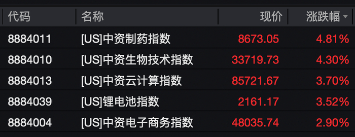 板块方面,中资制药、生物技术、云计算等板块领涨。