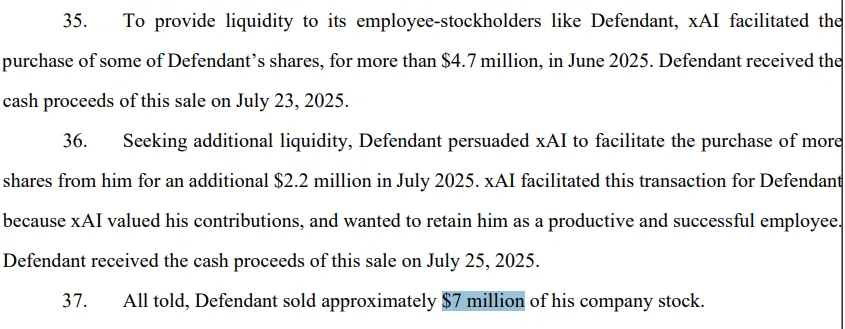 因为岗位关键,xAI给予了Li极大的信任。他不仅被授予了访问公司整个技术栈组件的权限,还能访问部分机密文件和专用信息。作为对核心人才的认可,xAI还为Li提供了期权和股份。今年6月和7月,xAI协助Li出售了他持有的公司股份,累计套现近700万美元。