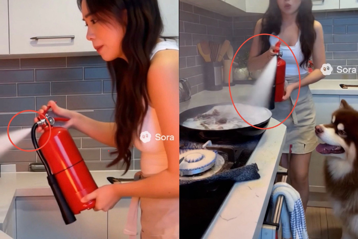 但这一产品也并非毫无瑕疵,例如,录入人脸输出的视频并不完全像本人,有用户反馈是“似像非像”的效果,同时,Sora在事实逻辑上仍有错误,在一个用灭火器的场景中,灭火器喷雾的出口并不准确。