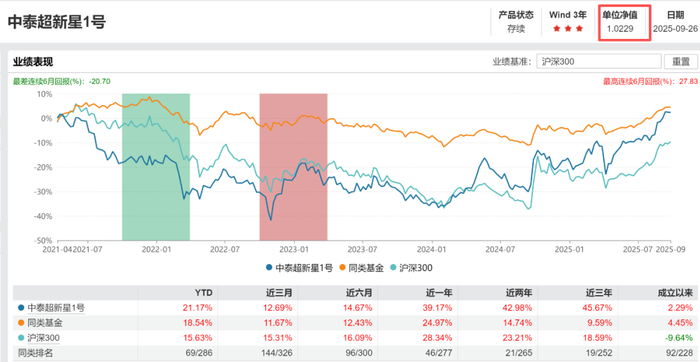 今年以来,在A股走牛的背景下,“中泰超新星1号”持续反弹,今年涨幅达21.17%。9月5日,产品净值终于重新站上1。截至9月26日,净值已经到了1.0229。不仅回本,还小赚了一点。