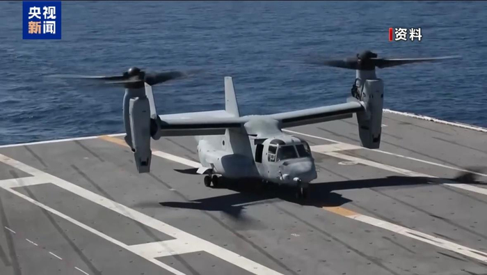 10月3日,日本防卫省发布消息称,一架美军鱼鹰运输机2日在日本航空自卫队滨松基地紧急着陆。据称,该飞机当时在飞行途中亮起警告灯。(总台报道员 柏春洋)