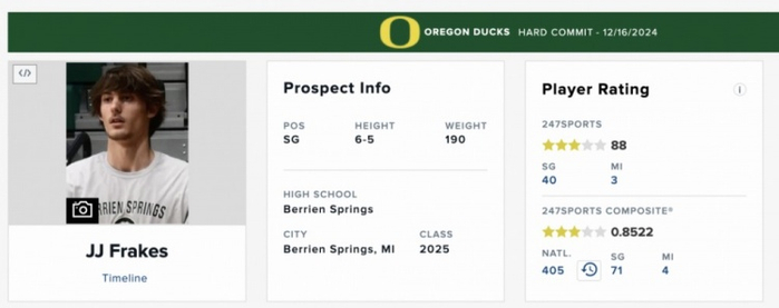 招生中,他们找来了三星高中生二号位JJ-弗雷克斯(全美高中排名400开外,实力估计不是很强)