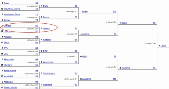 俄勒冈大学上赛季打进全国三十二强后惜败亚利桑那,显然,这是强队。