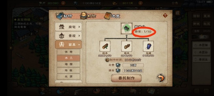 家具制作得分根据品质划分:绿色最高10分,蓝色最高15分,紫色最高20分,橙色为21分。