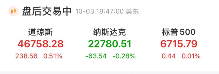 市场方面,北京时间10月4日,美股三大指数收盘涨跌不一,道指涨0.51%,本周累计上涨1.1%;纳指跌0.28%,本周累计上涨1.32%;标普500指数涨0.01%,本周累计上涨1.09%。