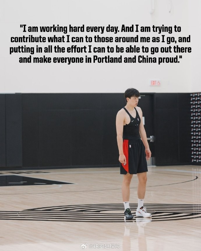 “我每天努力训练,想找到自己在场上的价值,努力成为一个让中国和波特兰大家骄傲的球员。”