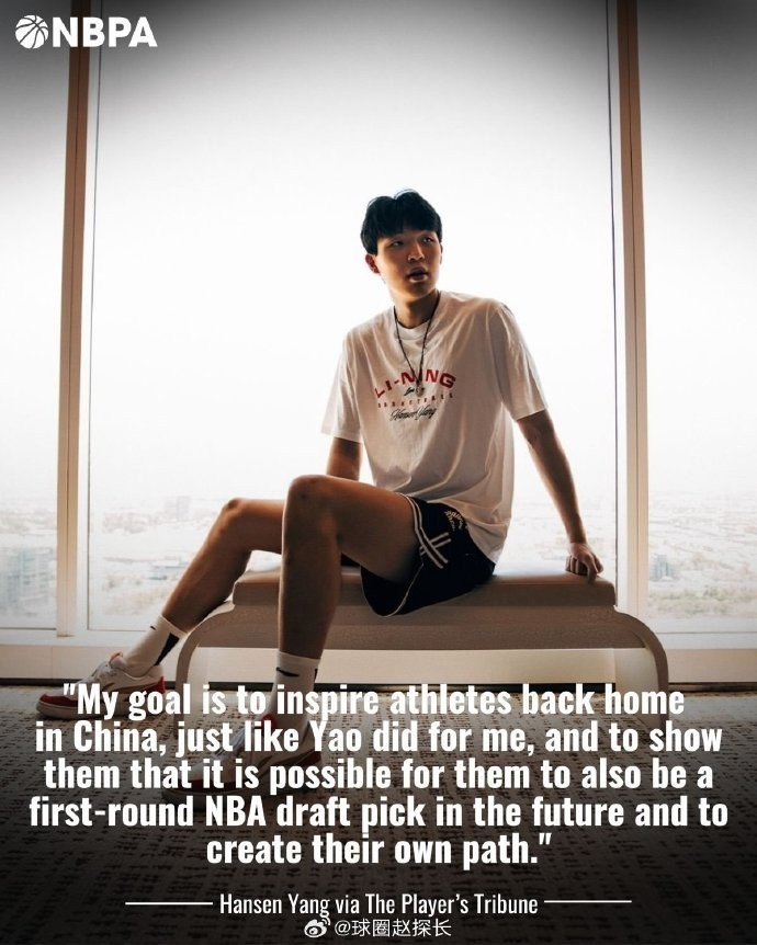 “我的目标是希望能激励中国的年轻球员,就像姚明等前辈激励过我一样。我想让他们看到,一切皆有可能,每个人都能走出自己的路。”