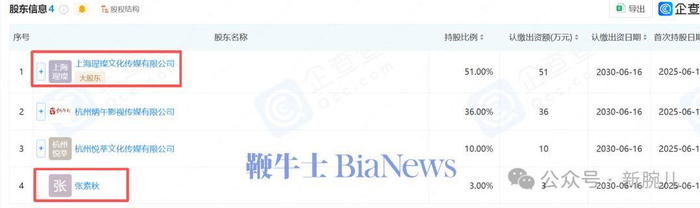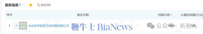 进一步股权穿透看到,这家上海瑆璨文化传媒有限公司为北京好奇易星文化传媒有限公司全资持股。