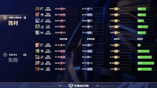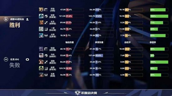 直播吧10月4日讯 2025KPL年度总决赛本场比赛是由成都AG超玩会对阵到北京JDG!第一局:AG前期控制中路资源和抓掉点打出接住,后期AG势如破竹点掉水晶拿下手机胜利!第二局:JDG控下中立资源但是被AG不断骚扰打出掉点,后期团战AG打赢关键团战成功拿下胜利!第三局:JDG前期拿到优势后选择不断压制AG发育,但是AG凭借坦然个人发挥成功打回局势拿下胜利!