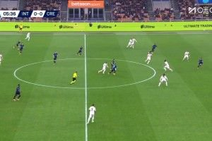 第6分钟,博尼禁区内左路左脚横传,中路劳塔罗包抄到位打进球门!国际米兰1-0领先克雷莫内塞↓