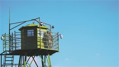 新疆伊犁军分区某边防连战士在哨楼执勤。