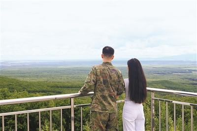 在连队驻守的主峰阵地,有一段通往界碑的台阶,多年来,官兵们在这条643级台阶的路上执勤,守卫边境安宁。经上级批准,张杰带着妻子参加巡逻。