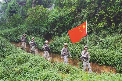 南部战区陆军某边防连官兵在南陲深山巡逻。