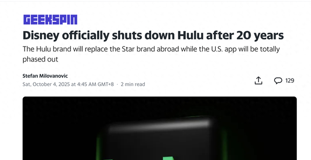 【环球网科技综合报道】据海外媒体GEEKSPIN报道,作为流媒体领域的重要品牌之一,Hulu已走过二十余年,但其作为独立平台的日子即将结束。