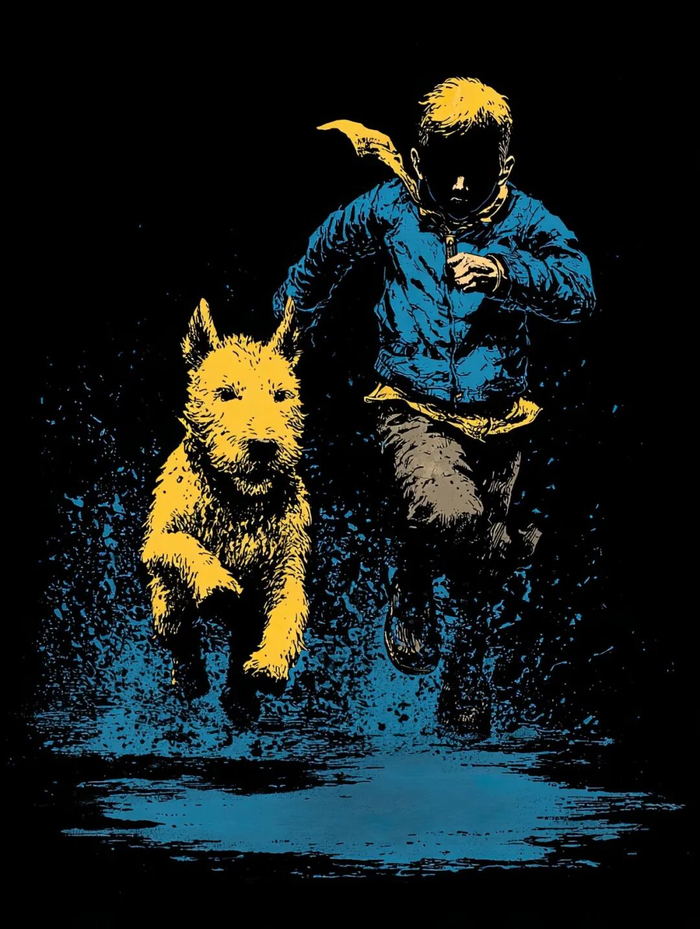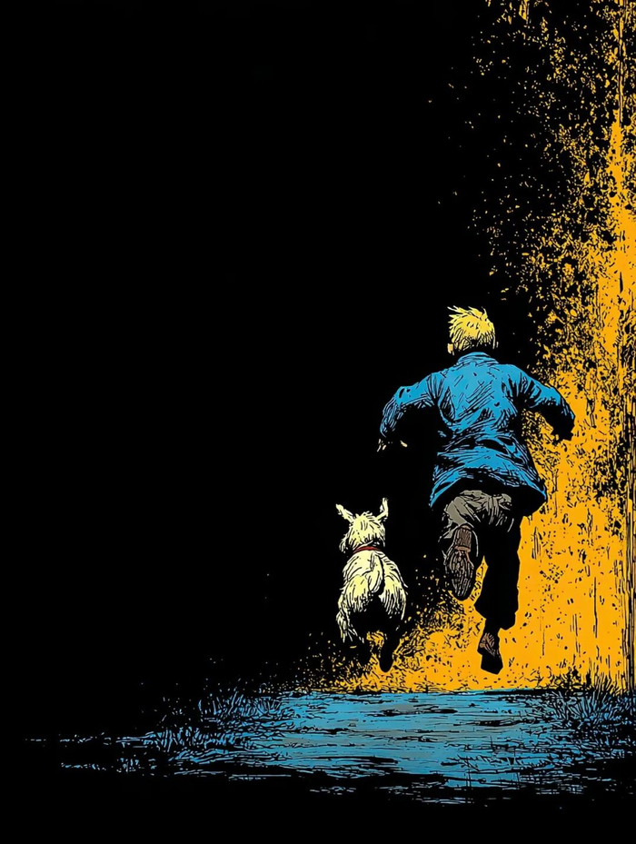 Prompt:Tintin and Milou running --sref 4084601108 --ar 16:9 --p --v7.0