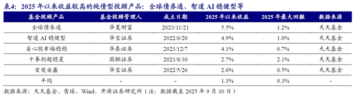对于纯债类产品,截至2025年9月30日,2025年以来业绩表现较优的投顾产品包括全球债券通、智道AI稳健型等。