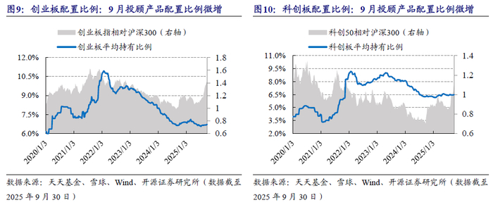 对于热门板块配置,本节考察股票类投顾产品配置港股、科创、创业板股票比例。同时,我们观察到投顾对热门板块的配置有右侧配置的特征。9月,投顾产品小幅增加科创板和创业板股票比例。9月,创业板配置比例均值从6.66%增加至6.71%,科创板配置比例均值从6.46%增加至6.48%。