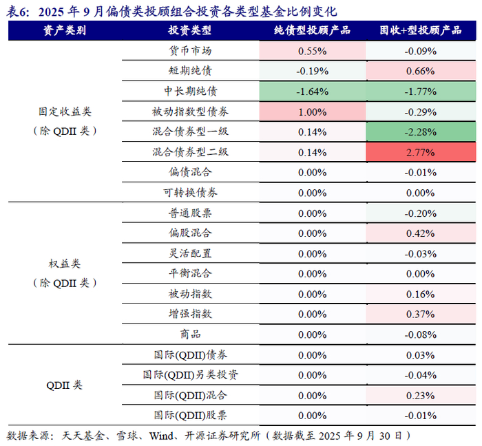 (1)股债混合型投顾产品:增加固收+基金,减少债券型基金。