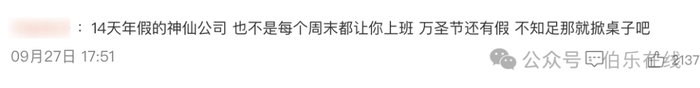 还有网友表示:“14 天年假的神仙公司,也不是每个周末都让你上班,万圣节还有假。不知足那就掀桌子吧。”