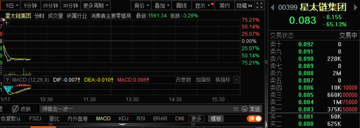 今日早盘,港股星太链集团直线闪崩,跌幅一度超过70%。