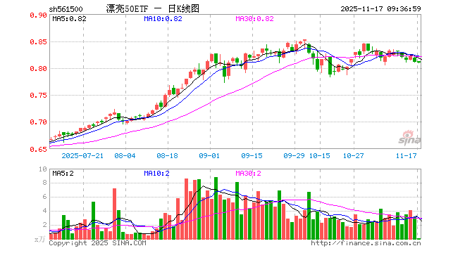 11月17日,漂亮50ETF(561500)开盘涨0.12%,报0.812元。漂亮50ETF(561500)重仓股方面,东方财富开盘跌0.12%,恒瑞医药跌0.02%,阳光电源跌1.33%,迈瑞医疗跌0.34%,豪威集团涨0.30%,万华化学跌1.09%,福耀玻璃涨0.00%,金山办公跌0.26%,同花顺跌0.75%,天孚通信涨0.00%。
