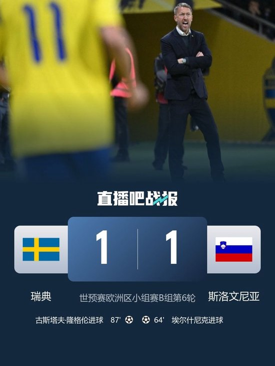 直播吧11月19日讯 北京时间11月19日凌晨3时45分,世预赛欧洲区小组赛B组第6轮在草莓竞技场展开角逐,瑞典主场迎战斯洛文尼亚。上半场瑞典仅2脚射门0射正,下半场斯塔费尔特失误送礼,埃尔什尼克打破僵局,隆格伦扳平比分。最终瑞典主场1-1战平斯洛文尼亚,瑞典6轮不胜积2分小组垫底,通过欧国联直通附加赛,斯洛文尼亚位居小组第3出局。