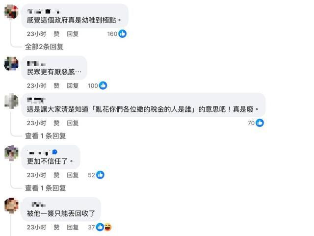 还有岛内网友怒喷台当局:“幼稚到极点”“拿来垫便当刚刚好”“唉!真爱乱花钱!把钱花在治水不是很好”“浪费公帑”“和平还是首选,战争不是游戏,能避才是王道”。