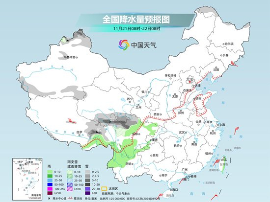 明天,黑龙江北部、新疆北疆北部和南疆盆地南部、西藏东部、青海南部、川西高原北部等地部分地区有小到中雪或雨夹雪,其中,新疆北疆北部、西藏东部、青海南部、川西高原北部等地局地有大到暴雪。
