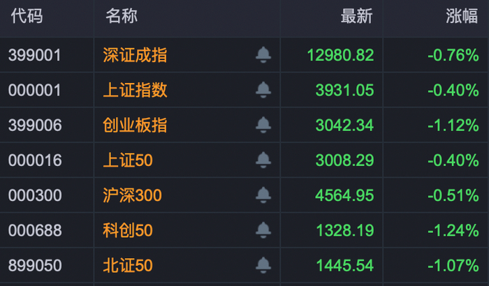11月20日,A股三大指数今日高开后震荡走低,截至收盘,沪指跌0.4%,深证成指跌0.76%,创业板指跌1.12%。