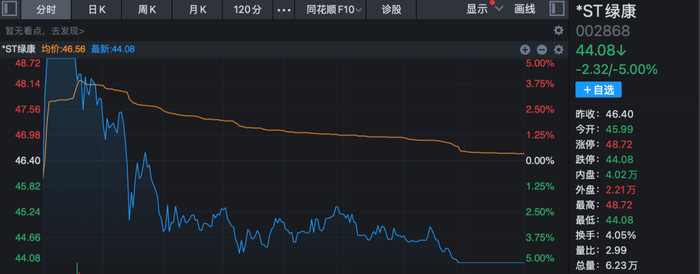 20日以涨停价开盘的*ST绿康(002868)直线跳水,上演“天地板”。此前11月6日到18日,*ST绿康曾走出9连板。此前,*ST绿康发布的三季报显示,今年前三季公司共实现营业收入4.10亿元,同比下降13.21%;实现净利润-8258.85万元。