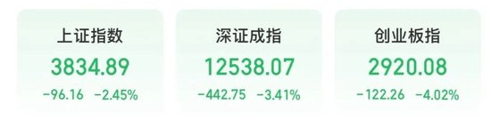 截至收盘,上证指数跌2.45%,深证成指跌3.41%,创业板指跌4.02%,市场全天成交额19836亿元,较上一交易日增加2610亿元。