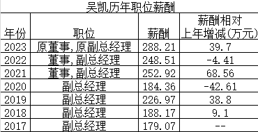 宁德时代历年年报数据显示,吴凯曾经担任公司董事、副总经理等职务。2017--2023累计薪酬为1568万元。