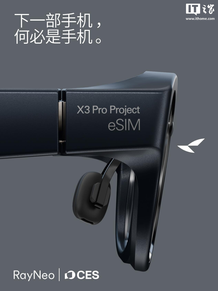 同期,雷鸟创新预告将于 CES 2026 期间展示全球首款搭载 eSIM 的 AR 智能眼镜“雷鸟 X3 Pro Project eSIM”。