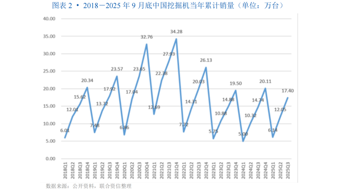 2025年以来,随着国家大规模设备更新和消费品以旧换新政策的扩围实施,以及相关产业政策的逐步落地,有效对冲房地产投资下滑影响,东南亚、中东等海外基建需求旺盛,成为重要增长引擎,为工程机械行业带来了确定性的市场机遇,对其行业需求形成稳定支撑。