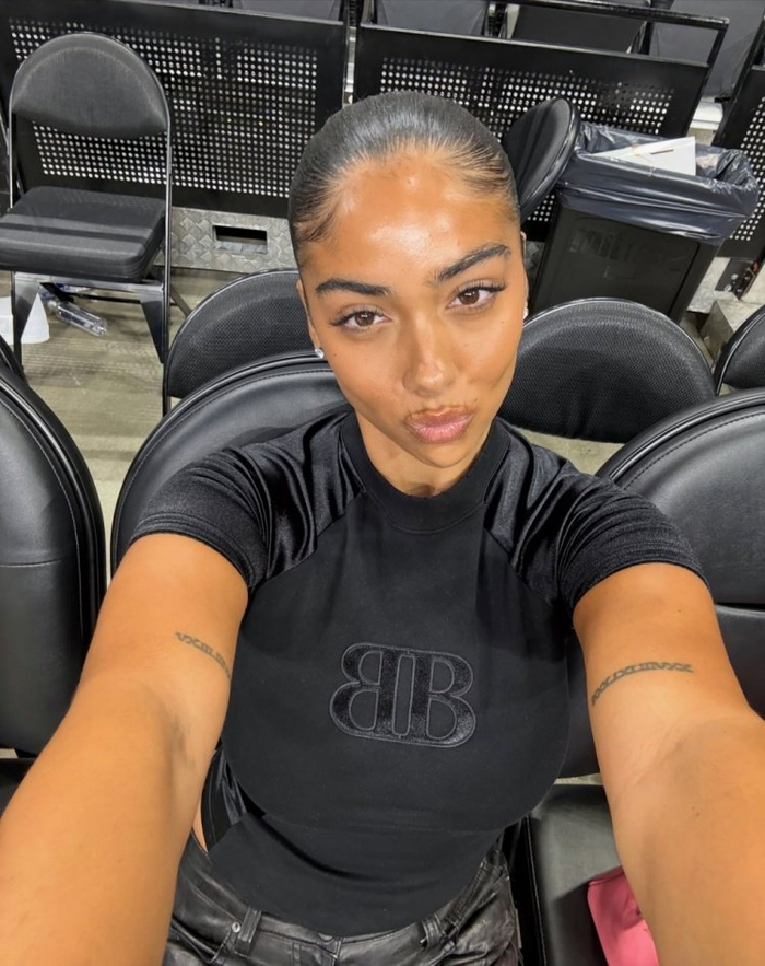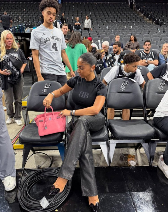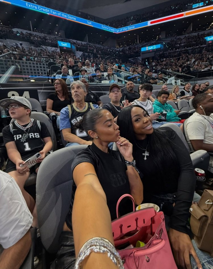 直播吧1月6日讯 索汉的女友Mya Mills更新社媒,晒出了她观看马刺上一场对阵开拓者的比赛的动态。
