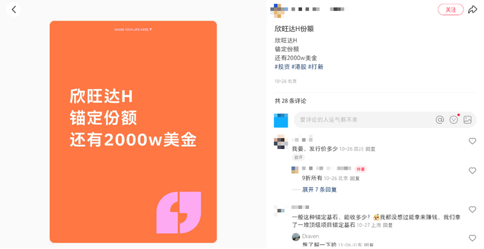 此外,港股IPO或可能面临更大的投资者订单需求压力。早在诉讼爆发前,某社交平台就已出现公开售卖欣旺达港股IPO锚定份额的信息,相关金额约2000万美元——港股国际配售仅面向合格机构投资者,相关信息本应仅在专业机构间流转,流入社交媒体的异常情况,或已侧面反映其需求端可能存在潜在压力。