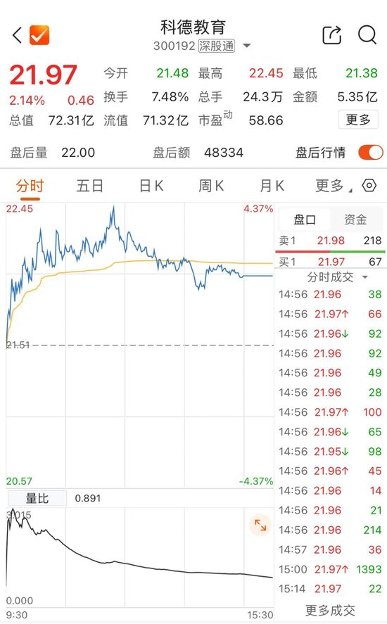 截至公告发出日,吴贤良直接持有公司9075万股股份,持股比例为27.95%,为公司控股股东、实际控制人。1月8日,科德教育收报21.97元/股,涨2.14%。