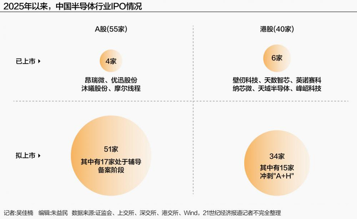 据21世纪经济报道记者不完全统计,2025年至今已有40家半导体公司启动赴港IPO计划,业务范围覆盖GPU、功率半导体、传感器、封测、设备等关键领域,呈现聚焦成长潜力高、研发投入大、产业链全覆盖的特征。